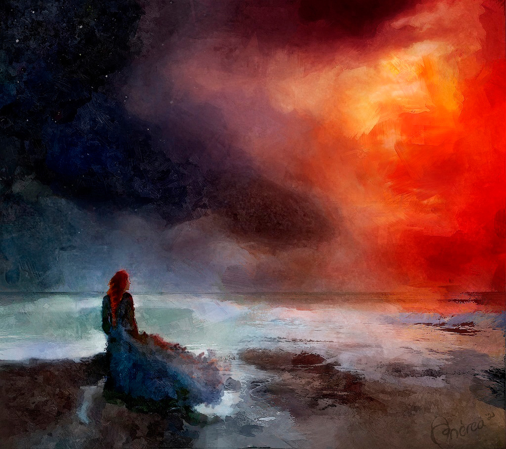 Description: Nerdanel stood on the shore of Aman, watching the flamelight that rose in the East and, as a wife and mother, couldn't help but wonder where she went wrong. Major Characters: Nerdanel Major Relationships: Genre: Drama Type: Character/Portrait, Drawing/Painting, Illustration, Landscape Challenges: Rating: General Warnings: |